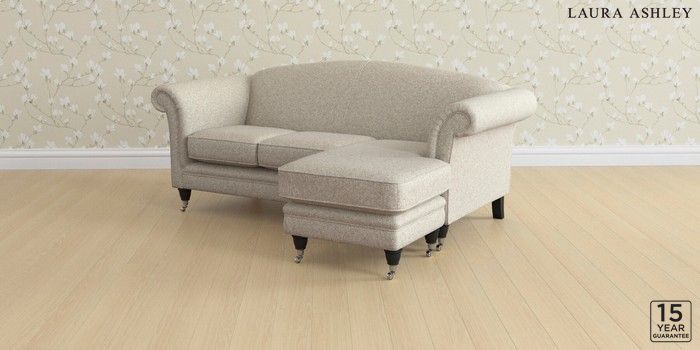 6.12.13 Buy Gloucester by Laura Ashley Medium Sofa Chaise - Universal Tichwell Stone Natural Low Chrome Castor - Black from the Next UK online shop Click here to use our accessible website