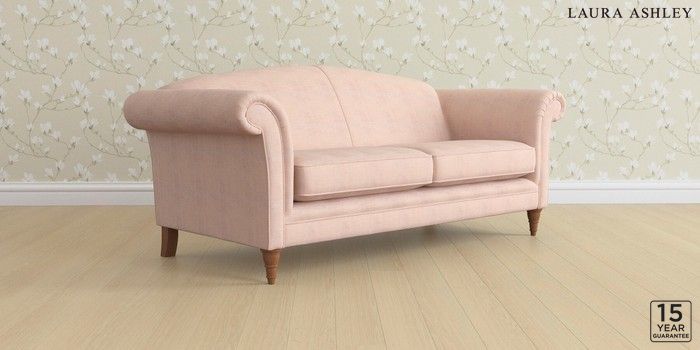 6.12.1 Buy Gloucester by Laura Ashley 3 Seater Sofa Edwin Chenille Blush Pink Low Turned - Teak from the Next UK online shop Click here to use our accessible website