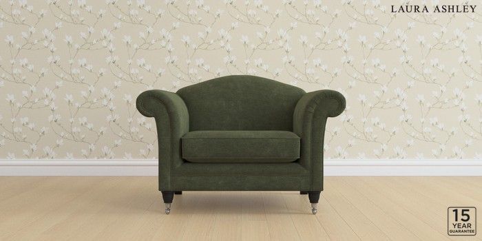6.12.1 Buy Gloucester by Laura Ashley Snuggle Alwyn Velvet Ivy Green Low Chrome Castor - Black from the Next UK online shop Click here to use our accessible website