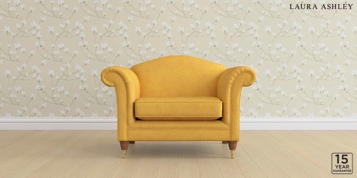 6.12.1 Buy Gloucester by Laura Ashley Snuggle Bainton Ochre Yellow Low Brass Castor - Teak from the Next UK online shop Click here to use our accessible website