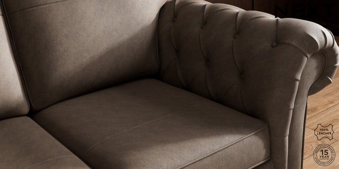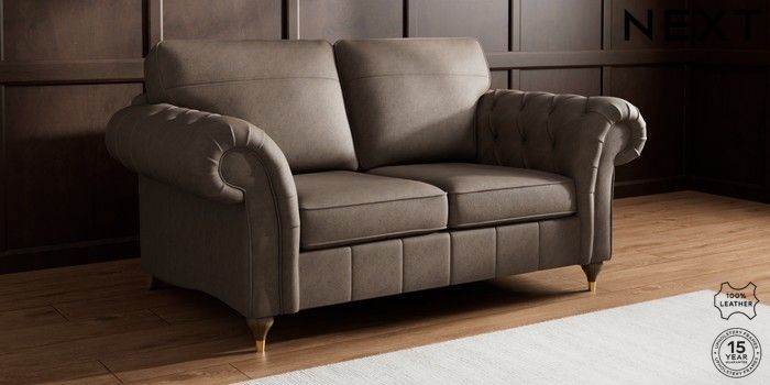 7.0.3 Buy Gosford Button Arm Leather 2 Seater Sofa Antiqued Leather Dark Brown Modern Turned Metal Cap - Mid from the Next UK online shop Click here to use our accessible website