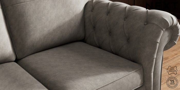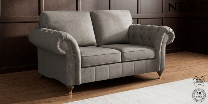 7.0.3 Buy Gosford Button Arm Leather 2 Seater Sofa Antiqued Leather Grey Modern Turned Metal Cap - Mid from the Next UK online shop Click here to use our accessible website