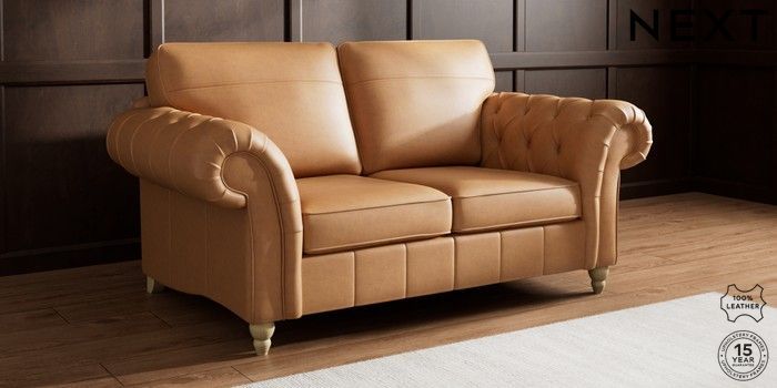 7.0.3 Buy Gosford Button Arm Leather 2 Seater Sofa Antiqued Leather Light Tan Brown Low Turned - Light from the Next UK online shop Click here to use our accessible website