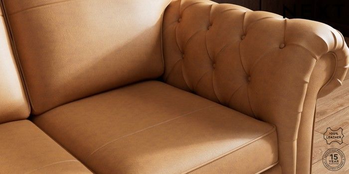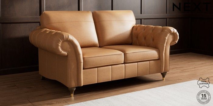 7.0.3 Buy Gosford Button Arm Leather 2 Seater Sofa Antiqued Leather Light Tan Brown Modern Turned Metal Cap - Mid from the Next UK online shop Click here to use our accessible website