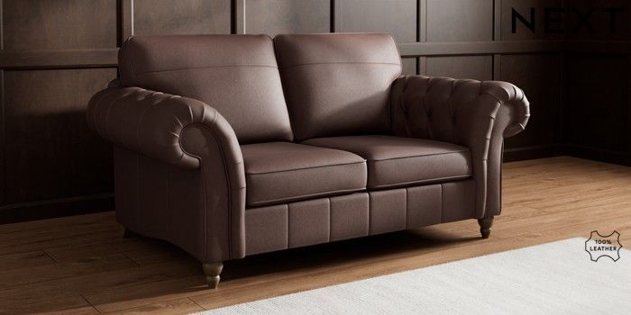 6.12.1 Buy Gosford Button Arm Leather 2 Seater Sofa Rustic Leather Dark Brown Low Turned - Mid from the Next UK online shop Click here to use our accessible website