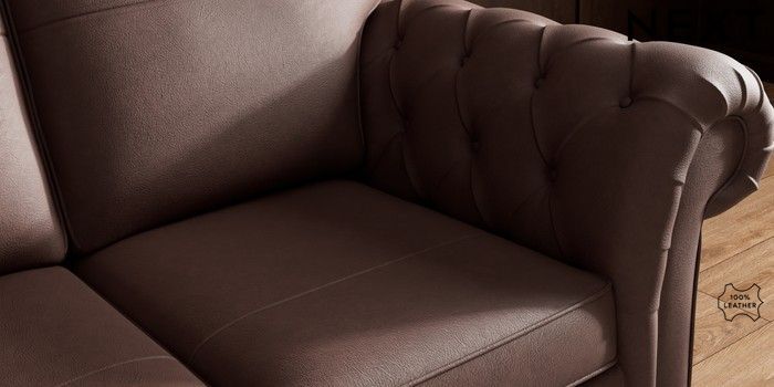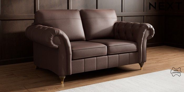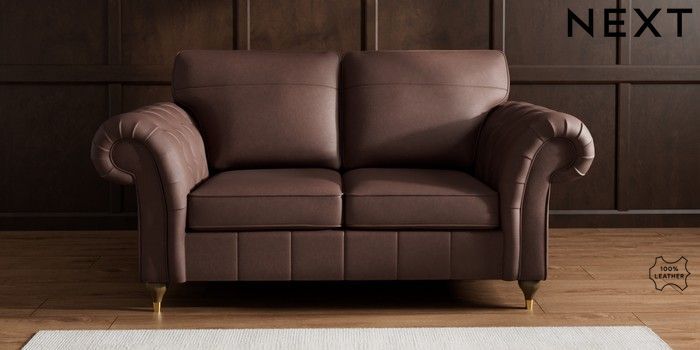 6.12.1 Buy Gosford Button Arm Leather 2 Seater Sofa Rustic Leather Dark Brown Modern Turned Metal Cap - Mid from the Next UK online shop Click here to use our accessible website