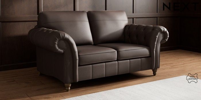 6.12.1 Buy Gosford Button Arm Leather 2 Seater Sofa Turin Leather Dark Brown Low Turned - Mid from the Next UK online shop Click here to use our accessible website