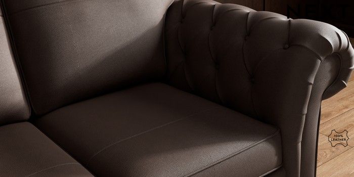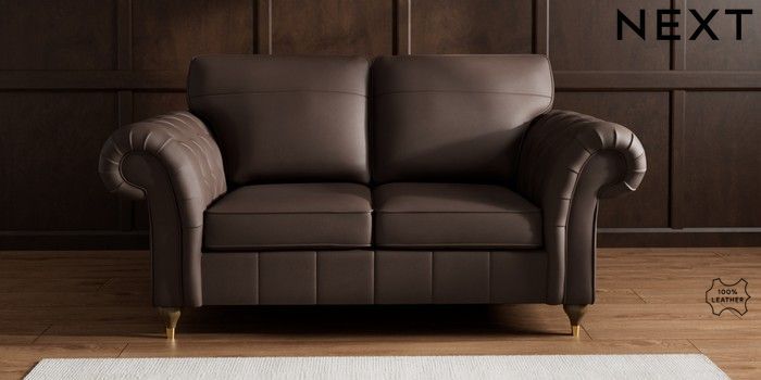 6.12.1 Buy Gosford Button Arm Leather 2 Seater Sofa Turin Leather Dark Brown Modern Turned Metal Cap - Mid from the Next UK online shop Click here to use our accessible website