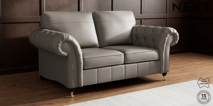 7.0.3 Buy Gosford Button Arm Leather 2 Seater Sofa Turin Leather French Grey Castor - Dark from the Next UK online shop Click here to use our accessible website