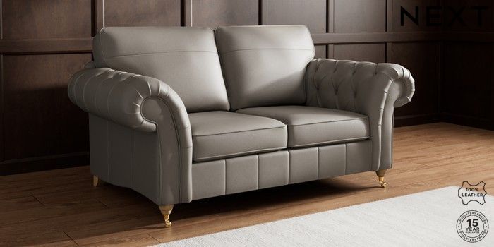 7.0.3 Buy Gosford Button Arm Leather 2 Seater Sofa Turin Leather French Grey Castor - Light from the Next UK online shop Click here to use our accessible website