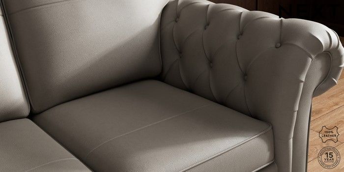 7.0.3 Buy Gosford Button Arm Leather 2 Seater Sofa Turin Leather French Grey Modern Turned Metal Cap - Mid from the Next UK online shop Click here to use our accessible website