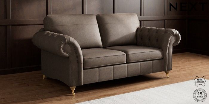 7.0.3 Buy Gosford Button Arm Leather 3 Seater Small Sofa Antiqued Leather Dark Brown Castor - Light from the Next UK online shop Click here to use our accessible website