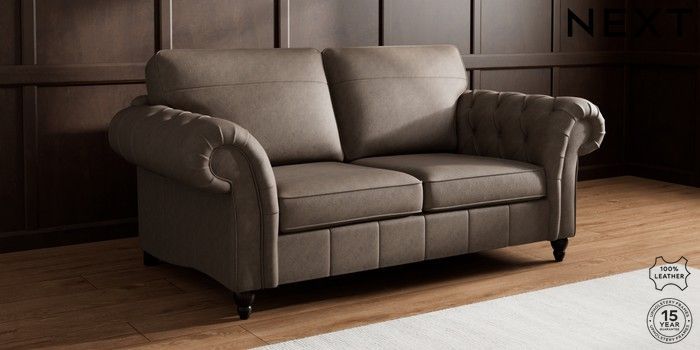 7.0.3 Buy Gosford Button Arm Leather 3 Seater Small Sofa Antiqued Leather Dark Brown Low Turned - Dark from the Next UK online shop Click here to use our accessible website