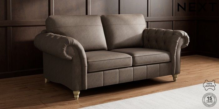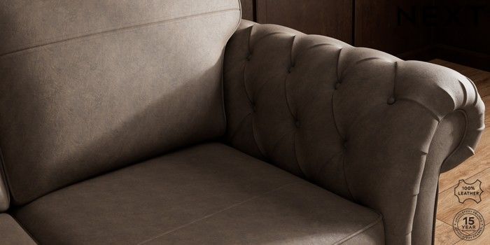 7.0.3 Buy Gosford Button Arm Leather 3 Seater Small Sofa Antiqued Leather Dark Brown Low Turned - Light from the Next UK online shop Click here to use our accessible website