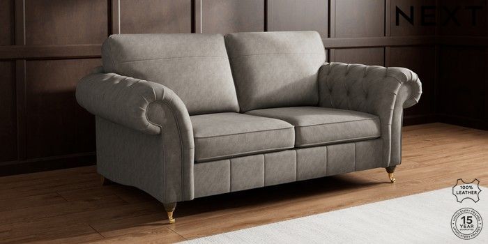 7.0.3 Buy Gosford Button Arm Leather 3 Seater Small Sofa Antiqued Leather Grey Castor - Mid from the Next UK online shop Click here to use our accessible website