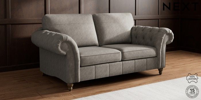 7.0.3 Buy Gosford Button Arm Leather 3 Seater Small Sofa Antiqued Leather Grey Low Turned - Mid from the Next UK online shop Click here to use our accessible website