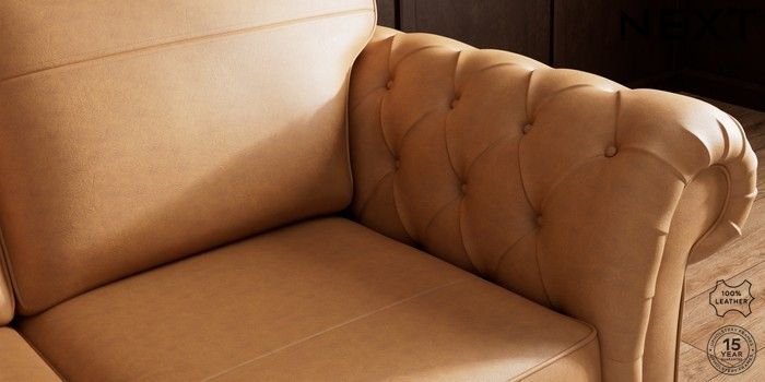 7.0.3 Buy Gosford Button Arm Leather 3 Seater Small Sofa Antiqued Leather Light Tan Brown Modern Turned Metal Cap - Mid from the Next UK online shop Click here to use our accessible website