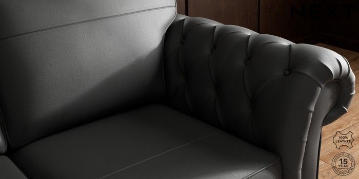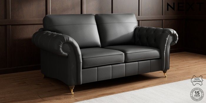 7.0.3 Buy Gosford Button Arm Leather 3 Seater Small Sofa Columbia Black Castor - Mid from the Next UK online shop Click here to use our accessible website