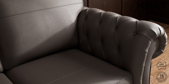 7.0.3 Buy Gosford Button Arm Leather 3 Seater Small Sofa Columbia Dark Brown Castor - Dark from the Next UK online shop Click here to use our accessible website