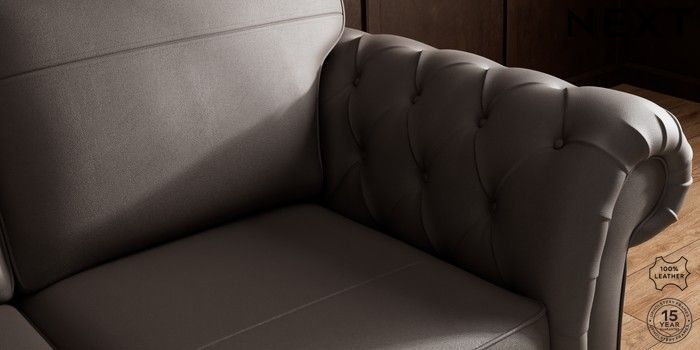 7.0.3 Buy Gosford Button Arm Leather 3 Seater Small Sofa Columbia Dark Brown Low Turned - Dark from the Next UK online shop Click here to use our accessible website