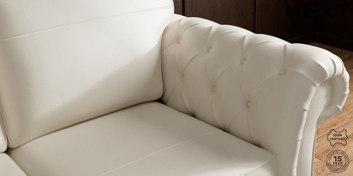 7.0.3 Buy Gosford Button Arm Leather 3 Seater Small Sofa Columbia Silver Grey Low Turned - Light from the Next UK online shop Click here to use our accessible website