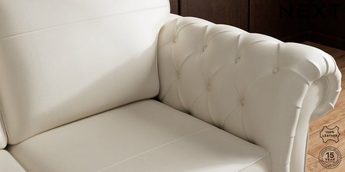 7.0.3 Buy Gosford Button Arm Leather 3 Seater Small Sofa Columbia Silver Grey Low Turned - Mid from the Next UK online shop Click here to use our accessible website