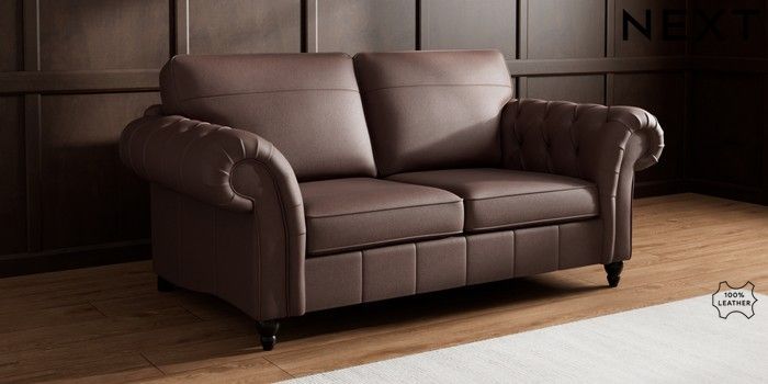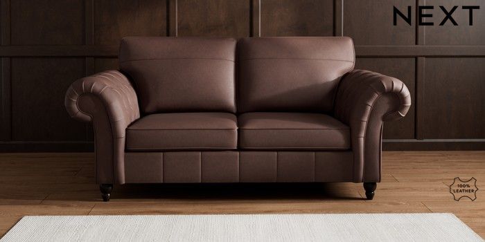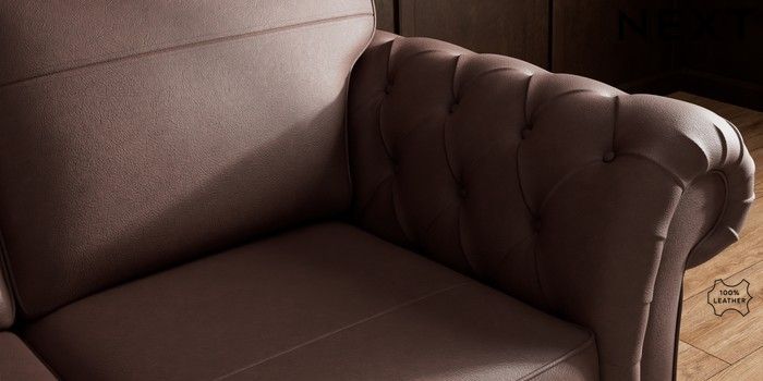 6.12.1 Buy Gosford Button Arm Leather 3 Seater Small Sofa Rustic Leather Dark Brown Low Turned - Dark from the Next UK online shop Click here to use our accessible website