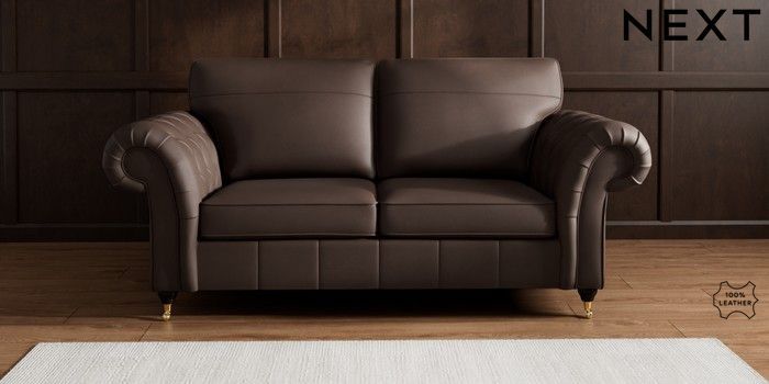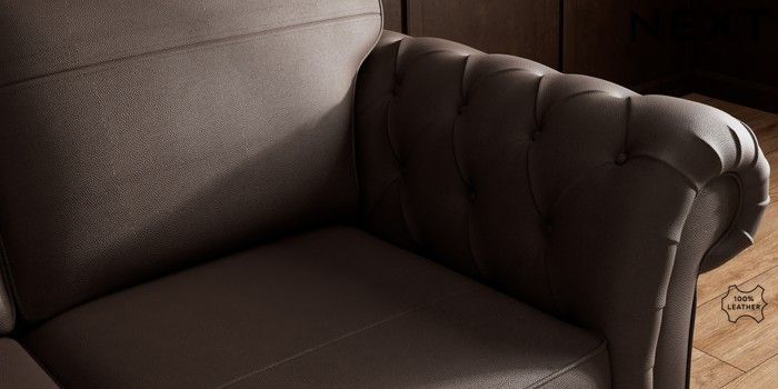 6.12.1 Buy Gosford Button Arm Leather 3 Seater Small Sofa Turin Leather Dark Brown Castor - Dark from the Next UK online shop Click here to use our accessible website