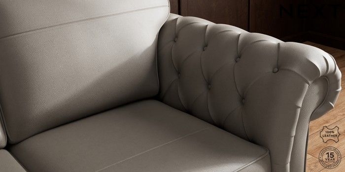 7.0.3 Buy Gosford Button Arm Leather 3 Seater Small Sofa Turin Leather French Grey Castor - Dark from the Next UK online shop Click here to use our accessible website