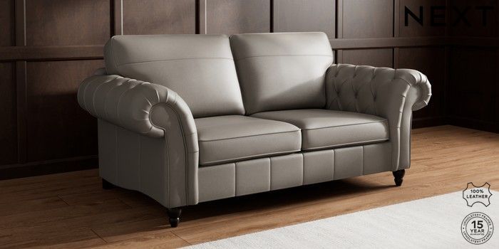 7.0.3 Buy Gosford Button Arm Leather 3 Seater Small Sofa Turin Leather French Grey Low Turned - Dark from the Next UK online shop Click here to use our accessible website
