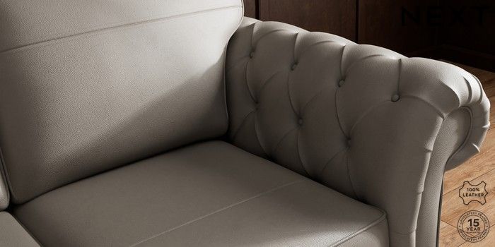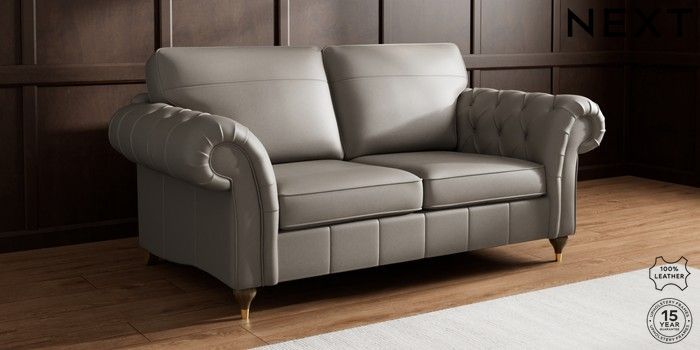 7.0.3 Buy Gosford Button Arm Leather 3 Seater Small Sofa Turin Leather French Grey Modern Turned Metal Cap - Mid from the Next UK online shop Click here to use our accessible website