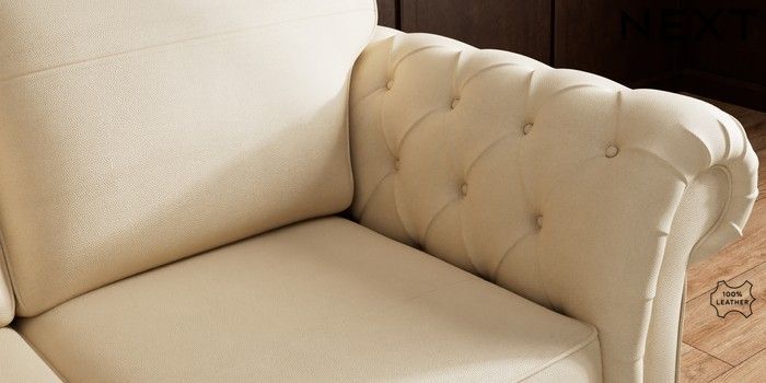 6.12.1 Buy Gosford Button Arm Leather 3 Seater Small Sofa Turin Leather Light Natural Modern Turned Metal Cap - Mid from the Next UK online shop Click here to use our accessible website