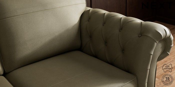 7.0.3 Buy Gosford Button Arm Leather 3 Seater Small Sofa Turin Leather Moss Green Low Turned - Dark from the Next UK online shop Click here to use our accessible website