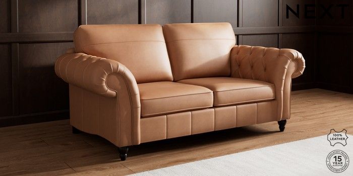 7.0.3 Buy Gosford Button Arm Leather 3 Seater Small Sofa Turin Leather Tan Brown Low Turned - Dark from the Next UK online shop Click here to use our accessible website