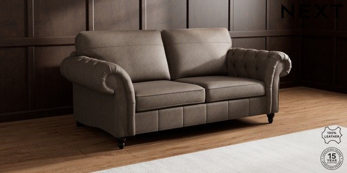 7.0.3 Buy Gosford Button Arm Leather 3 Seater Sofa Antiqued Leather Dark Brown Low Turned - Dark from the Next UK online shop Click here to use our accessible website