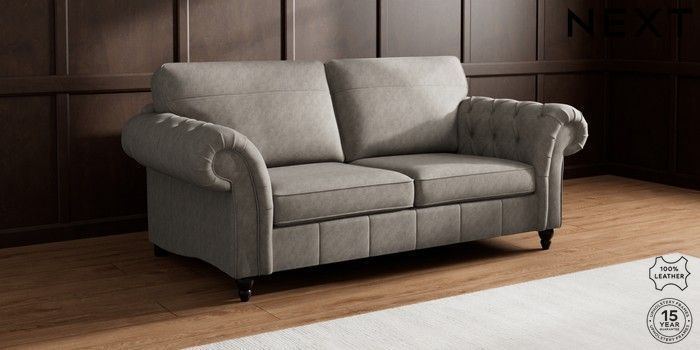 7.0.3 Buy Gosford Button Arm Leather 3 Seater Sofa Antiqued Leather Grey Low Turned - Dark from the Next UK online shop Click here to use our accessible website