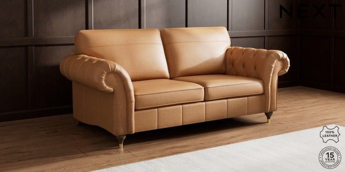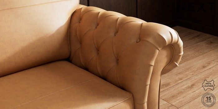 7.0.3 Buy Gosford Button Arm Leather 3 Seater Sofa Antiqued Leather Light Tan Brown Modern Turned Metal Cap - Mid from the Next UK online shop Click here to use our accessible website