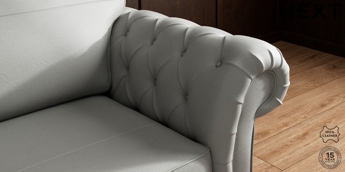 7.0.3 Buy Gosford Button Arm Leather 3 Seater Sofa Columbia French Grey Modern Turned Metal Cap - Mid from the Next UK online shop Click here to use our accessible website