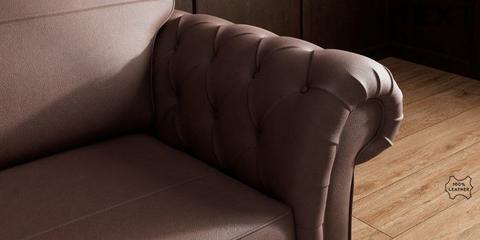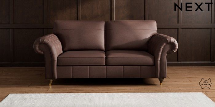 6.12.1 Buy Gosford Button Arm Leather 3 Seater Sofa Rustic Leather Dark Brown Modern Turned Metal Cap - Mid from the Next UK online shop Click here to use our accessible website