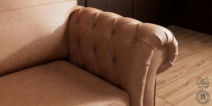 7.0.3 Buy Gosford Button Arm Leather 3 Seater Sofa Rustic Leather Light Brown Castor - Mid from the Next UK online shop Click here to use our accessible website