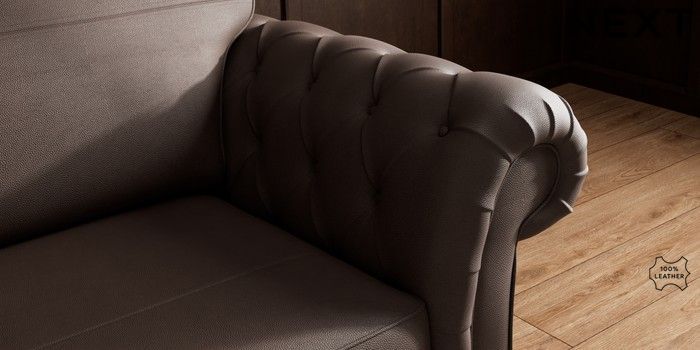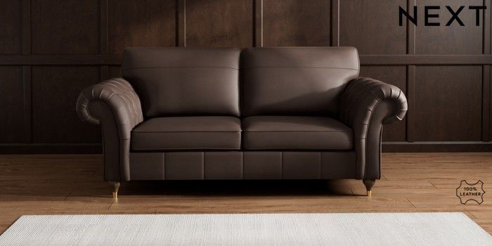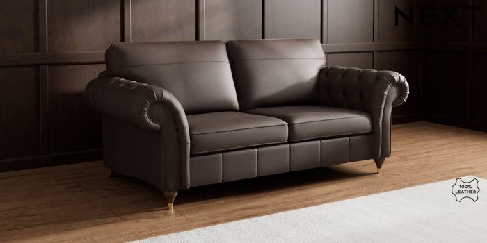 6.12.1 Buy Gosford Button Arm Leather 3 Seater Sofa Turin Leather Dark Brown Modern Turned Metal Cap - Mid from the Next UK online shop Click here to use our accessible website