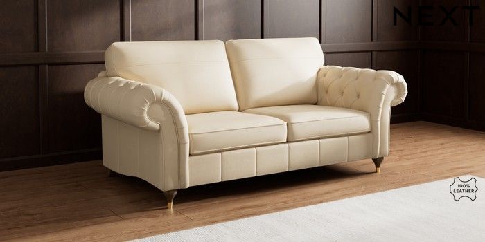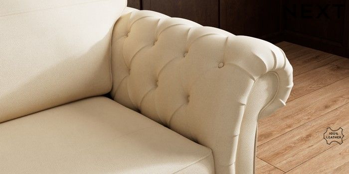 6.12.1 Buy Gosford Button Arm Leather 3 Seater Sofa Turin Leather Light Natural Modern Turned Metal Cap - Mid from the Next UK online shop Click here to use our accessible website
