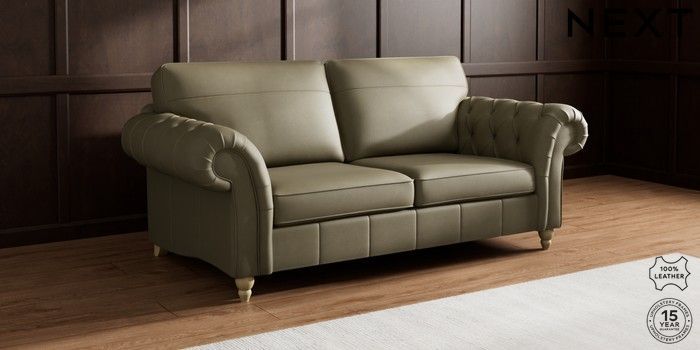 7.0.3 Buy Gosford Button Arm Leather 3 Seater Sofa Turin Leather Moss Green Low Turned - Light from the Next UK online shop Click here to use our accessible website