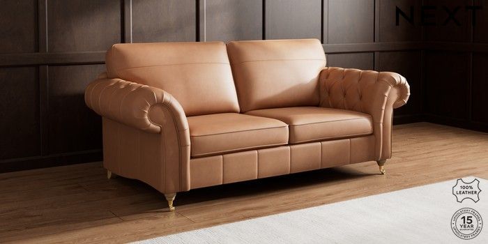 7.0.3 Buy Gosford Button Arm Leather 3 Seater Sofa Turin Leather Tan Brown Castor - Light from the Next UK online shop Click here to use our accessible website