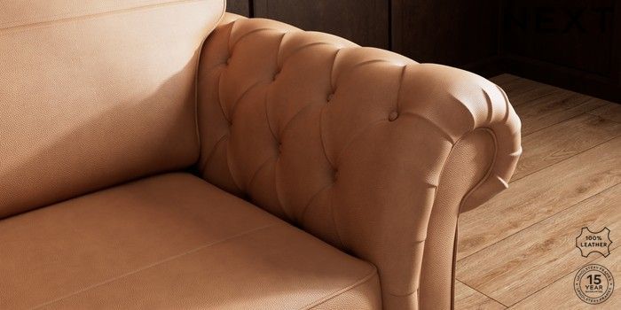 7.0.3 Buy Gosford Button Arm Leather 3 Seater Sofa Turin Leather Tan Brown Modern Turned Metal Cap - Mid from the Next UK online shop Click here to use our accessible website