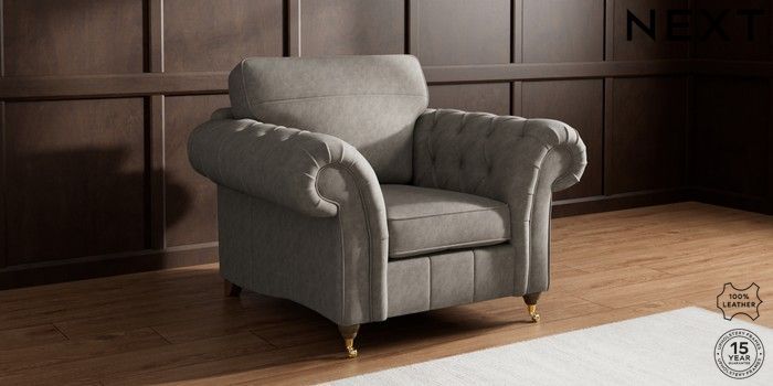 7.0.3 Buy Gosford Button Arm Leather Armchair Antiqued Leather Grey Castor - Mid from the Next UK online shop Click here to use our accessible website