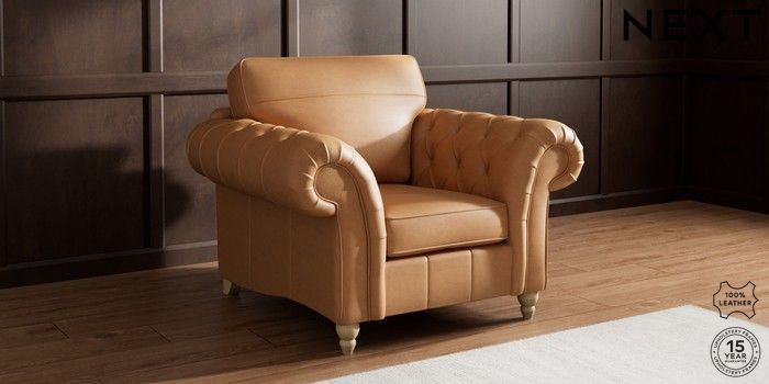 7.0.3 Buy Gosford Button Arm Leather Armchair Antiqued Leather Light Tan Brown Low Turned - Light from the Next UK online shop Click here to use our accessible website