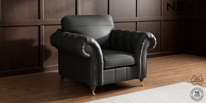 7.0.3 Buy Gosford Button Arm Leather Armchair Columbia Black Castor - Mid from the Next UK online shop Click here to use our accessible website