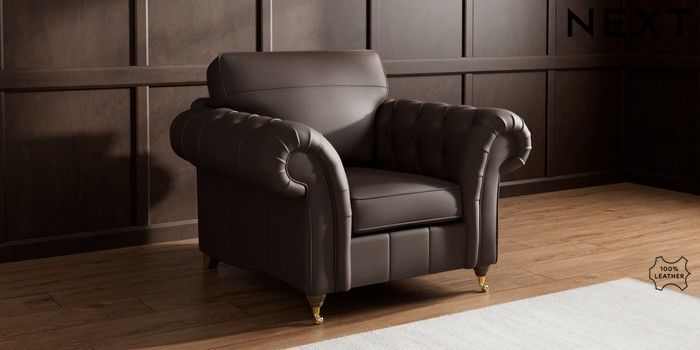 6.12.1 Buy Gosford Button Arm Leather Armchair Turin Leather Dark Brown Castor - Mid from the Next UK online shop Click here to use our accessible website