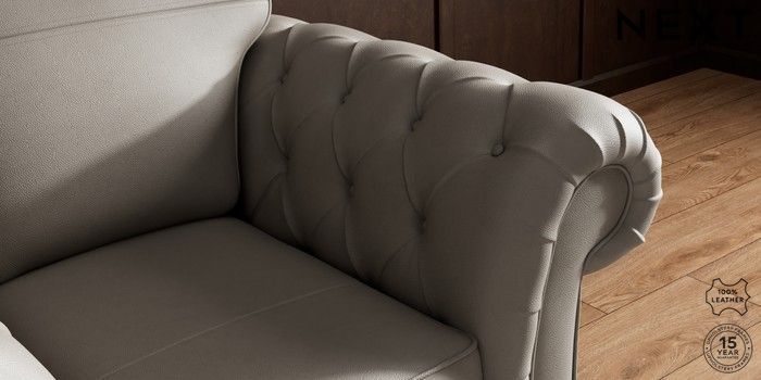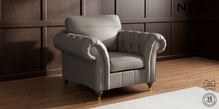7.0.3 Buy Gosford Button Arm Leather Armchair Turin Leather French Grey Modern Turned Metal Cap - Mid from the Next UK online shop Click here to use our accessible website